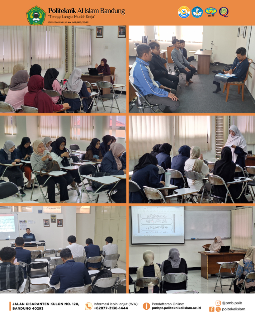Bandung, 1 Juli 2025 — Suasana religius dan penuh semangat belajar terasa kuat dalam kegiatan Halaqah Ta’lim yang rutin diselenggarakan oleh Bidang Kemahasiswaan Politeknik Al Islam Bandung pada Selasa (1/7). Diperuntukkan bagi mahasiswa semester 2, kegiatan ini dilaksanakan secara serentak di berbagai ruang kelas sesuai dengan pembagian kelompok masing-masing.